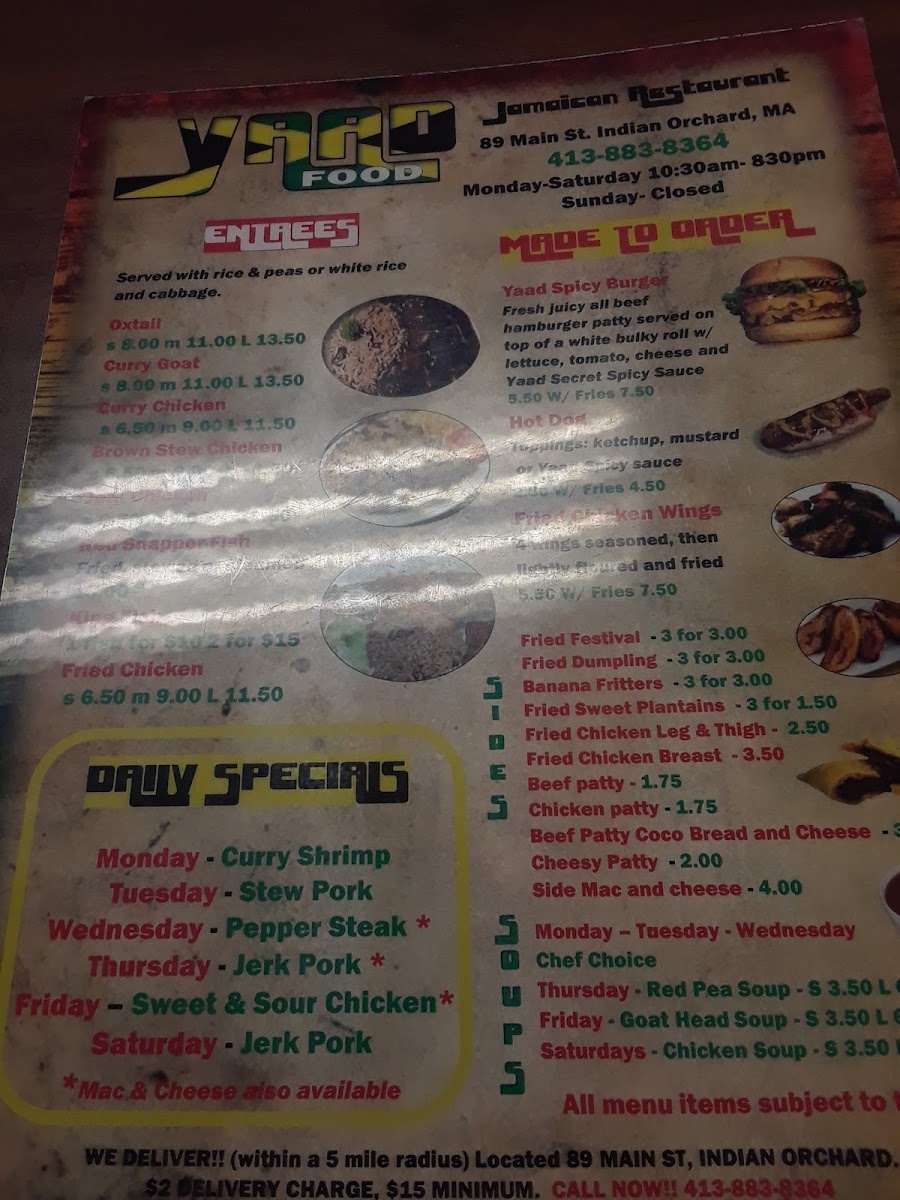 Welcome to Yaad Food Jamaican Restaurant, your go-to spot for authentic Jamaican cuisine nestled in Indian Orchard, MA. Renowned for its flavorful dishes, the menu showcases a delightful array of options sure to tantalize your taste buds.